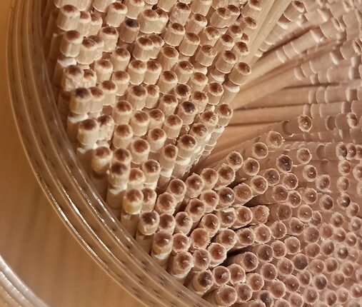 頭の黒いところが全部そろっていて、またやや山になっていて、それに棒の部分にはくびれが3か所ついていて、それも同じ幅、同じ深さ。まるで小さなこけし人形の様。