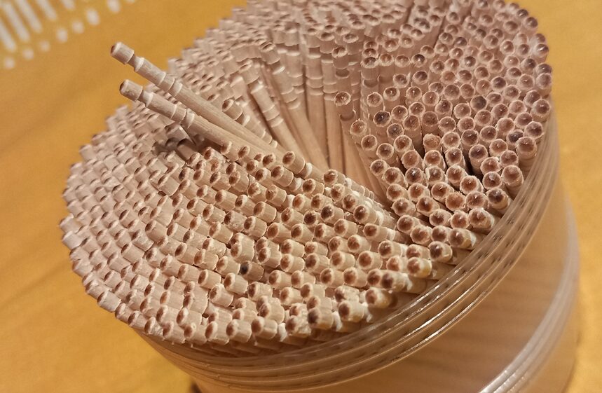 歯の隙間のお掃除にしても、羊羹を突きさしても、一度つかったらそれでゴミ箱行き。