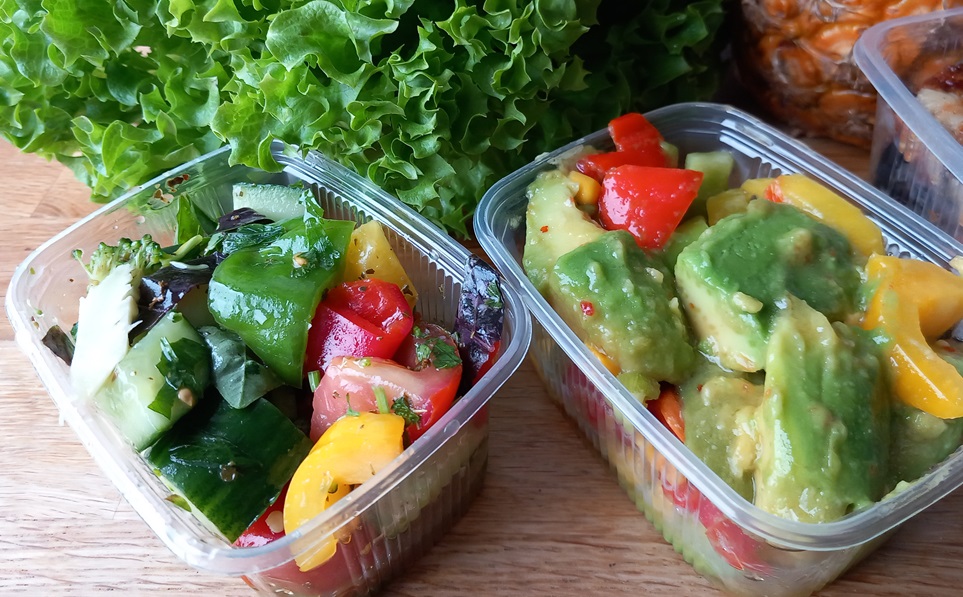 今回、お惣菜コーナーで買ったのは、お野菜のたっぷり入ったサラダとアボガドのサラダ。