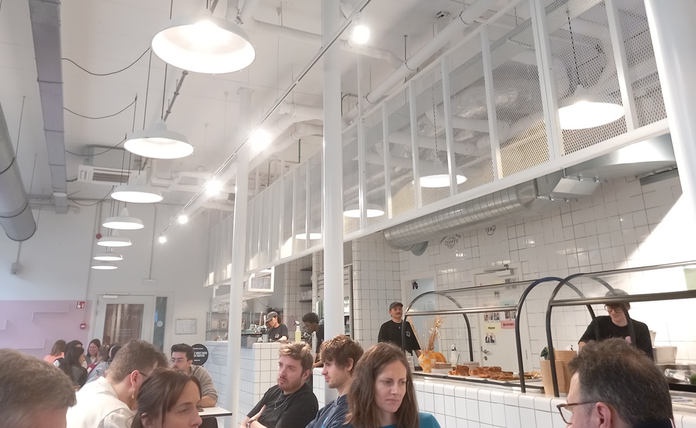 この長いテーブルは予約席で、この後すぐに団体さんが入ってくる。