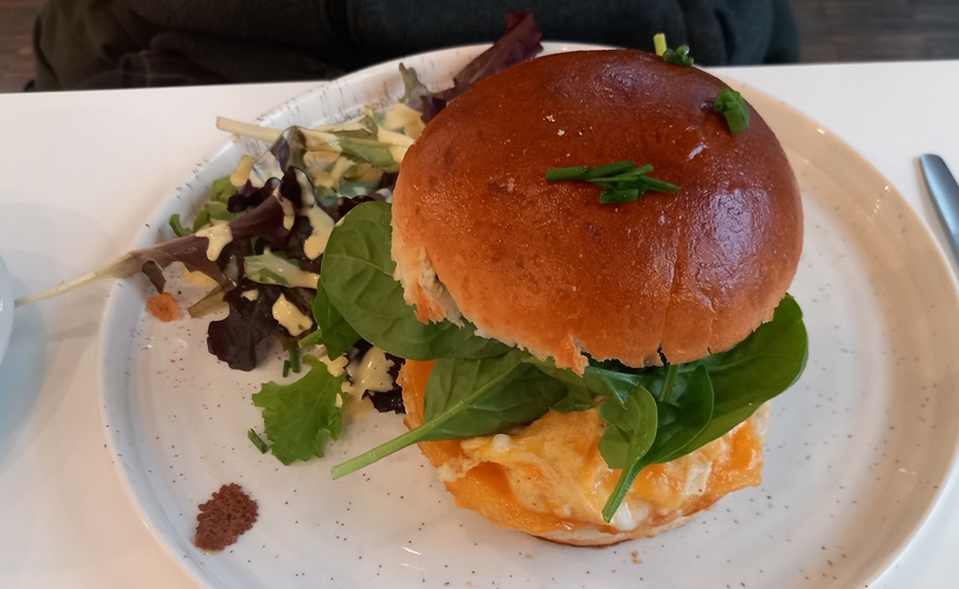 メニューは、このハンバーガー風のサンドイッチと、サラダ系がメイン。
