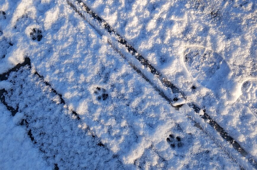 もうちょっと歩いていると、犬ちゃんの足跡もあったよ。