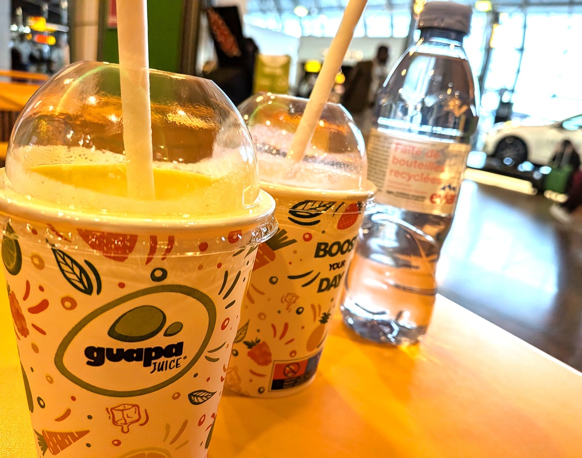 早めについてチェックインもサッサとすませて、果物ジュースで一息。