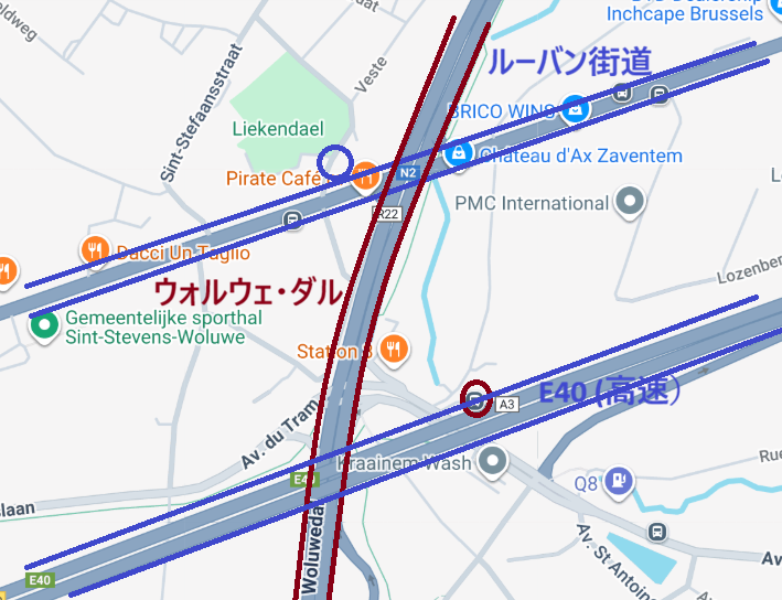 それはともかく。そのルーバン街道と並行して走っているのが高速道路のE40.